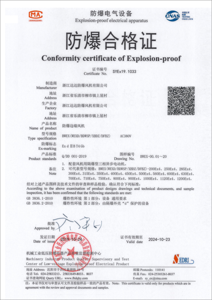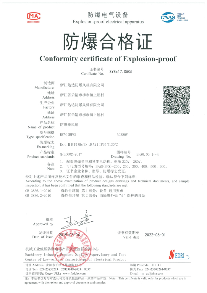 防爆合格证(边墙风机)